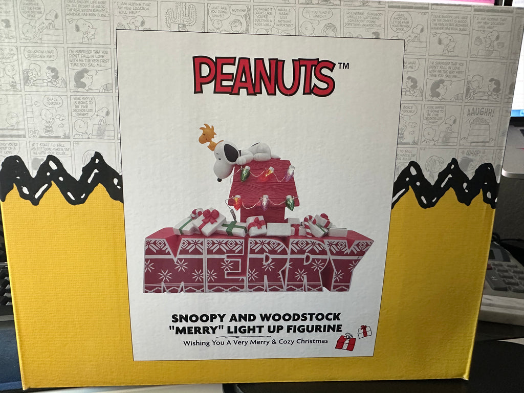 - Snoopy helps you celebrate the season as no other beagle can. He and Woodstock enjoy his doghouse decorated with Christmas lights that really light up while surrounded by perfectly wrapped packages.