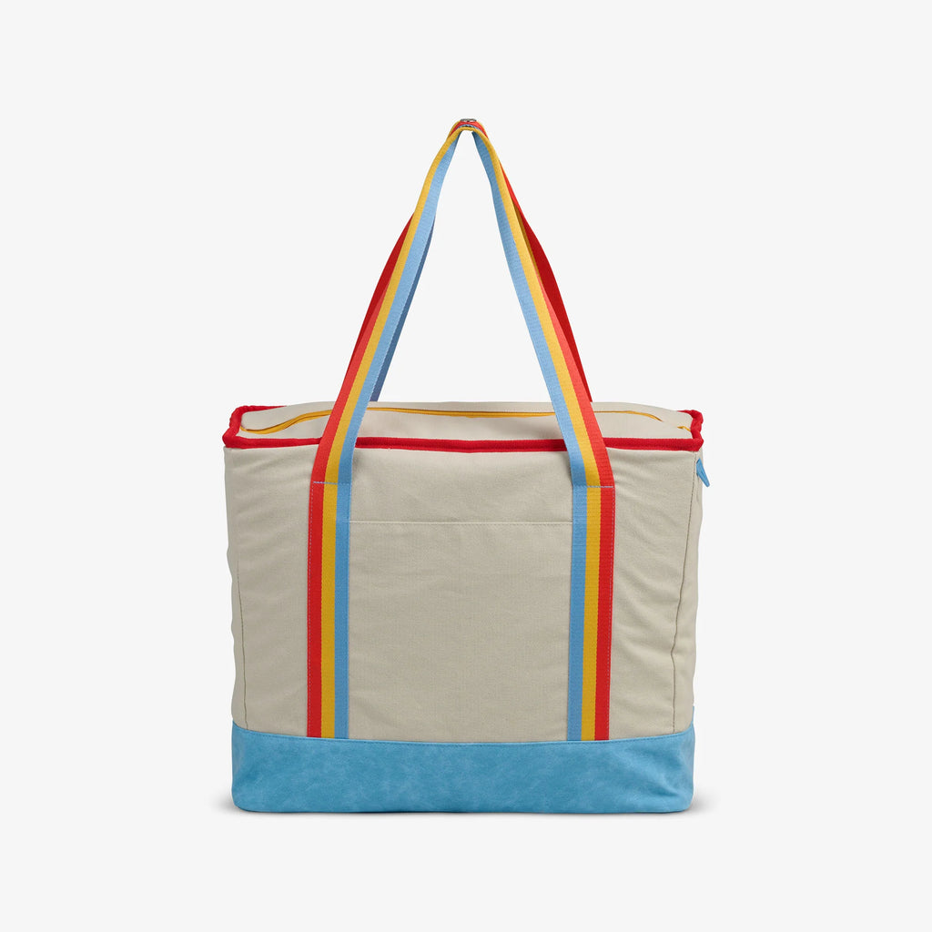 Happiness is dance parties with great friends, so join the cooler Peanuts party! Snoopy (the coolest beagle on the planet) and Woodstock (Snoopy’s little yellow partner in fun) are featured disco dancing the day away on this very cheerful and retro-colored insulated tote bag.