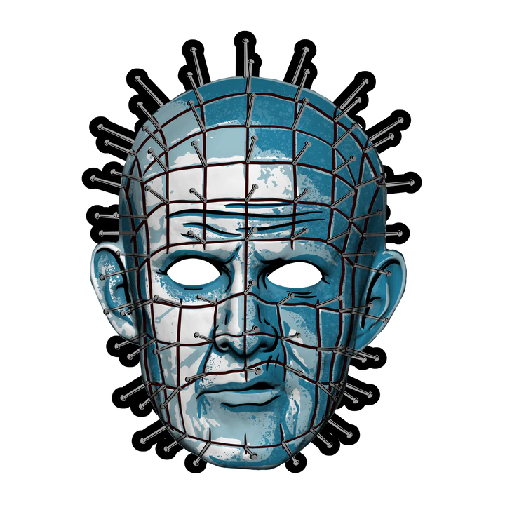 This lightweight vacuform mask showcases a screen-printed illustrated design with bold colors and stylized details that capture Pinhead’s unmistakable look in retro fashion.