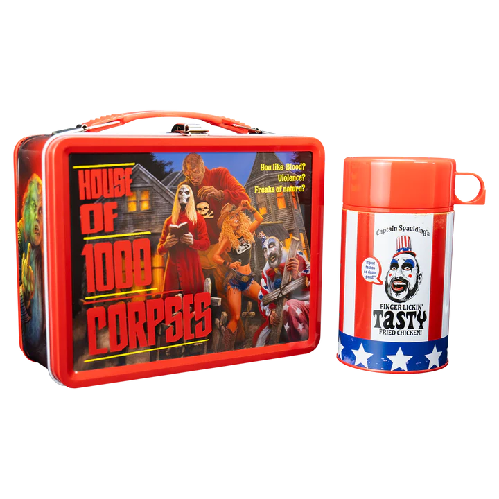From Rob Zombie's House of 1000 Corpses comes the perfect lunch time accessory for kids of all ages! This all metal lunchbox comes complete with a thermos all with original artwork of the unforgettable characters from the movie!