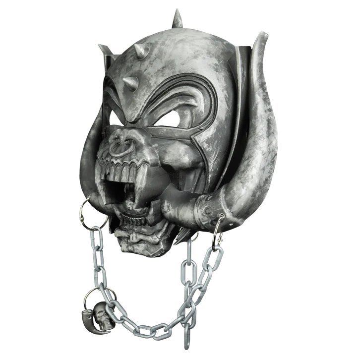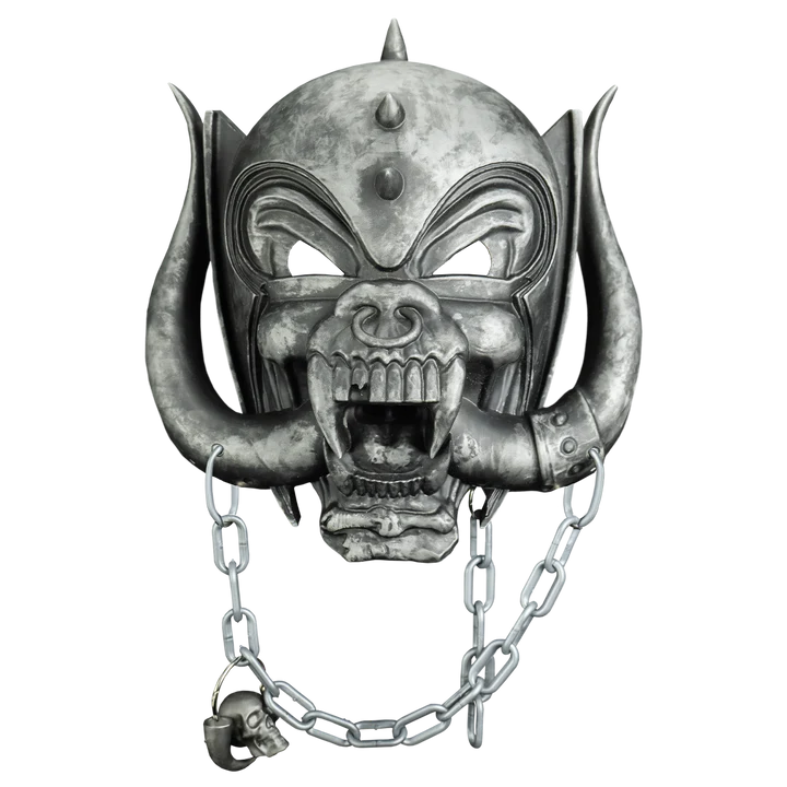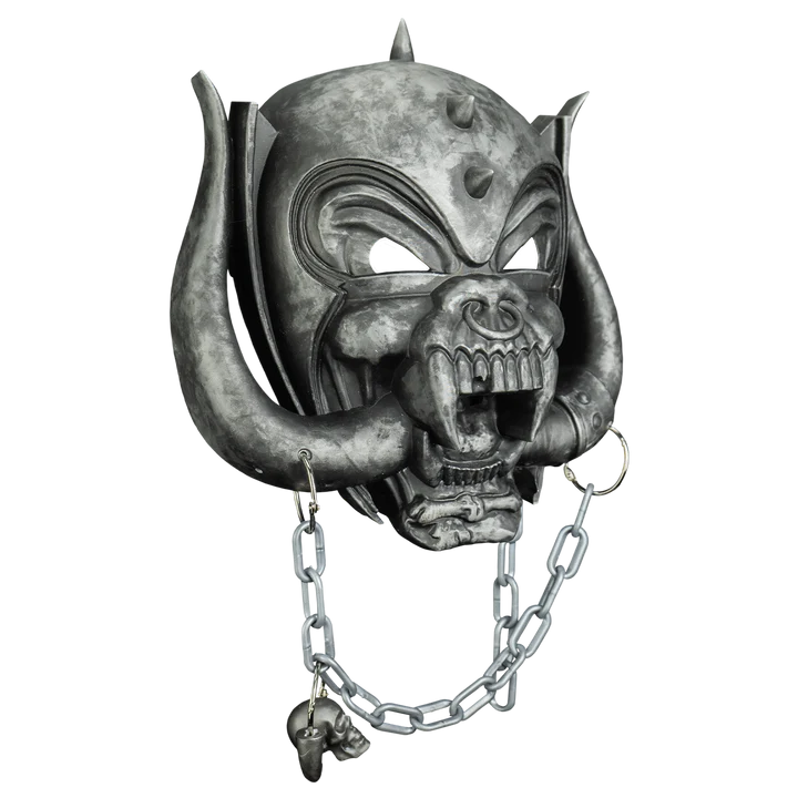 Trick or Treat Studios is proud to present the officially licensed Motörhead - Warpig Retro Mask. This hard plastic face mask includes a detailed plastic chain with skull and tooth accent, and features an elastic strap for a comfortable fit. Perfect for Halloween or display, it’s a must-have for any Motörhead fan!