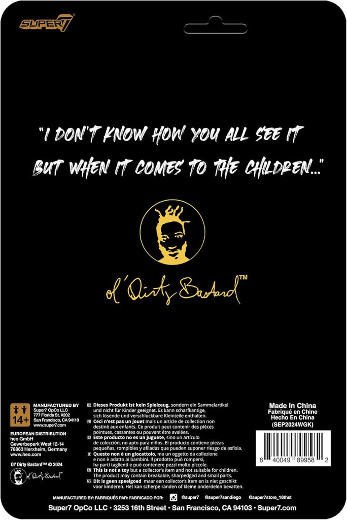 - ODB SUPER7 ACTION FIGURE: Hip-hop legend and Wu-Tang Clan founding member ODB joins the Super7 action toy figures lineup